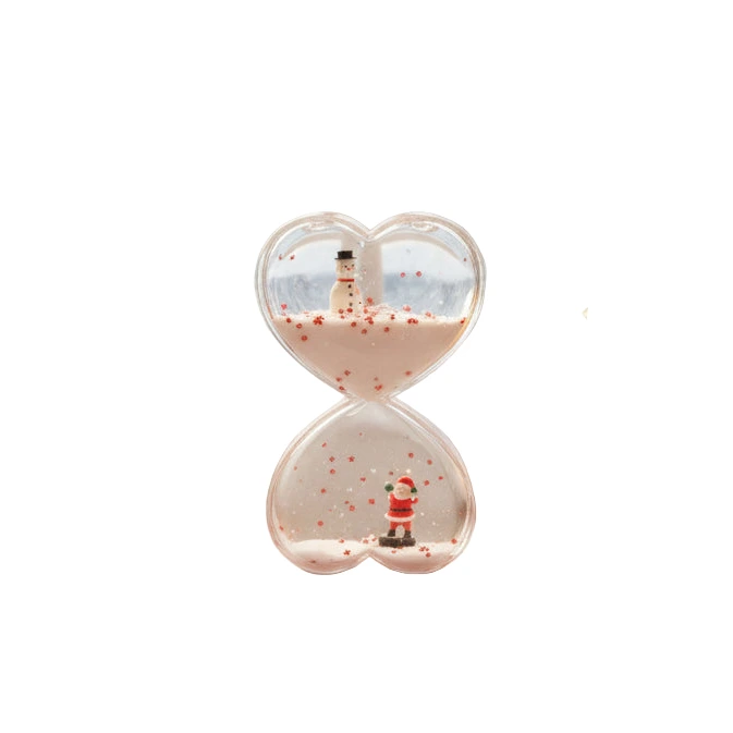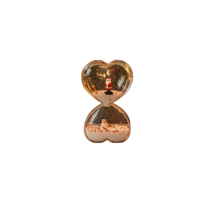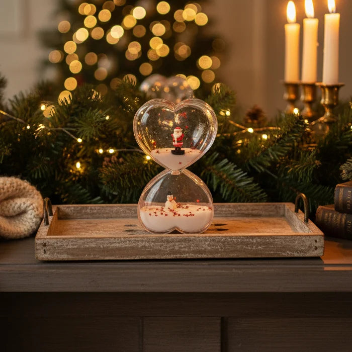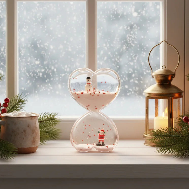 Ανακαλύψτε τη μαγεία του χρόνου μέσα από μια χειροποίητη διακοσμητική κλεψύδρα, σχεδιασμένη για να προσθέσει φαντασία και γιορτινή ατμόσφαιρα στον χώρο σας. Με καρδιά ως βασικό σχήμα και φιγούρες του Άγιου Βασίλη και του χιονάνθρωπου στο εσωτερικό της, αυτή η κλεψύδρα δεν είναι απλώς ένα στολίδι—είναι μια συμβολική υπενθύμιση της αξίας κάθε στιγμής.