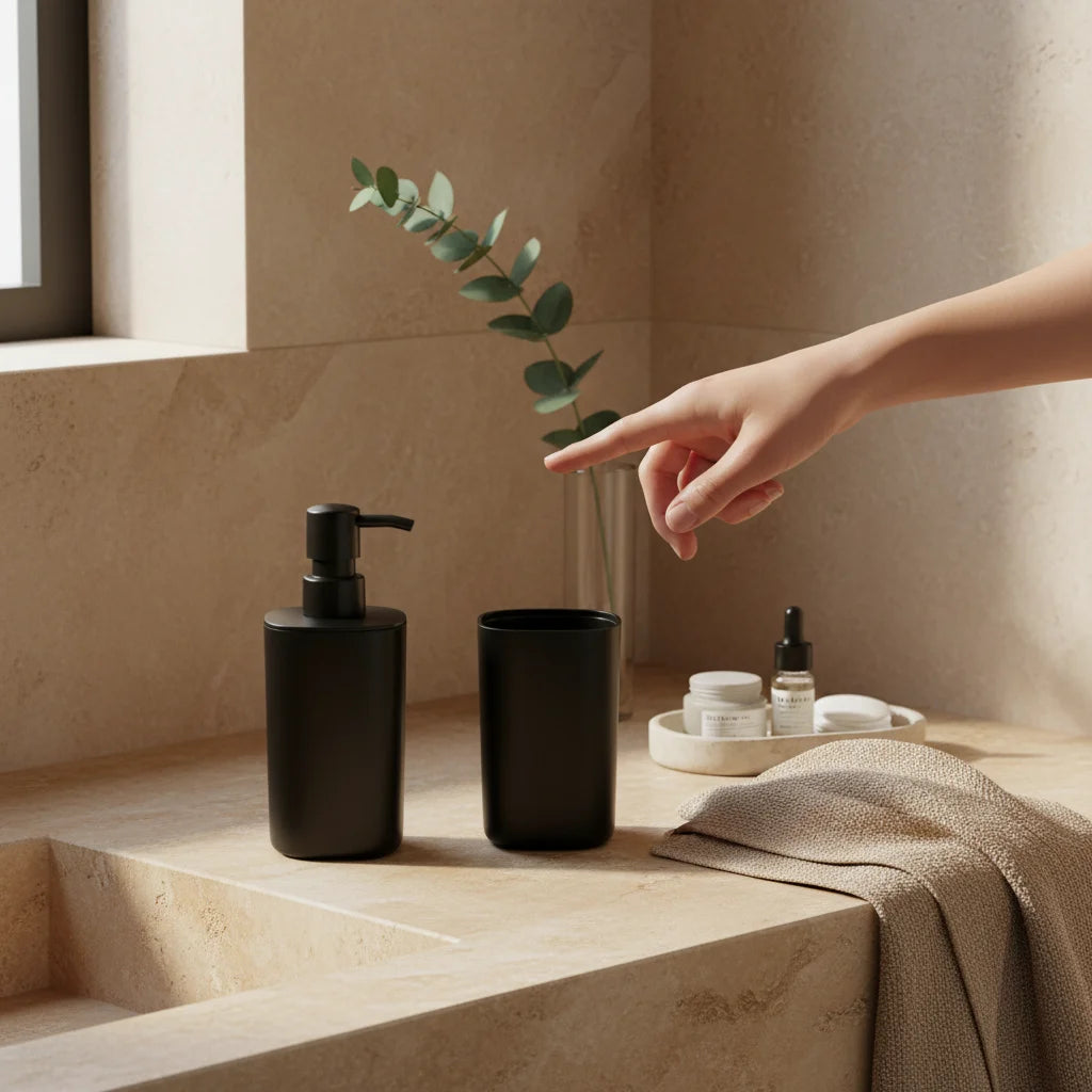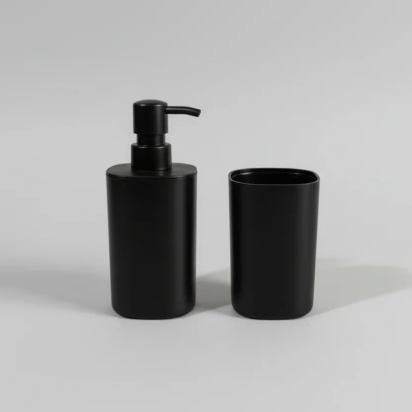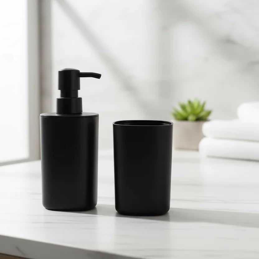 Σετ Αξεσουάρ Μπάνιου 2 Τεμαχίων Πλαστικό – Μαύρο Ματ (Dispenser & Ποτήρι)