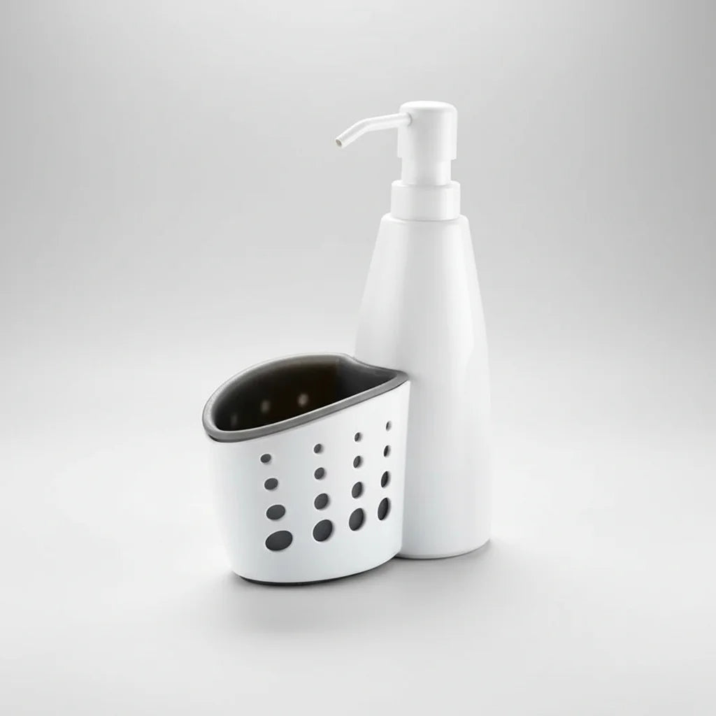Ανανεώστε την όψη του πάγκου σας με αυτό το κομψό και πρακτικό σετ οργάνωσης νεροχύτη. Σχεδιασμένο για να προσφέρει λύση στο πρόβλημα της ακαταστασίας γύρω από τη βρύση, το σετ συνδυάζει ένα δοχείο υγρού σαπουνιού με αντλία και μια ανεξάρτητη θήκη για το σφουγγάρι, σε ένα ενιαίο αισθητικό σύνολο.