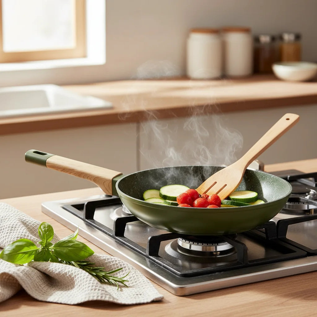 Το τηγάνι Baroly Marble (22cm) της Home Style φέρνει μια νότα ανανέωσης και φυσικής ομορφιάς στην κουζίνα σας. Ξεχωρίζει χάρη στον μοναδικό συνδυασμό της εξωτερικής πράσινης απόχρωσης με την κομψή λαβή από ξύλο, δημιουργώντας ένα σκεύος που χαίρεσαι να βλέπεις και να χρησιμοποιείς.