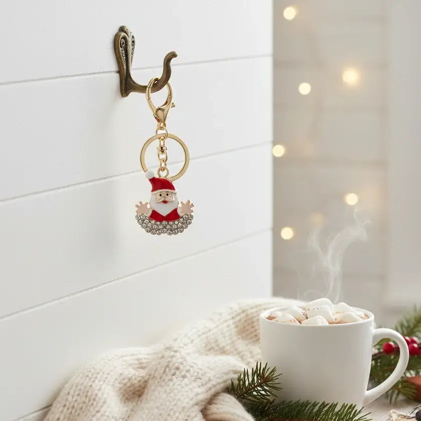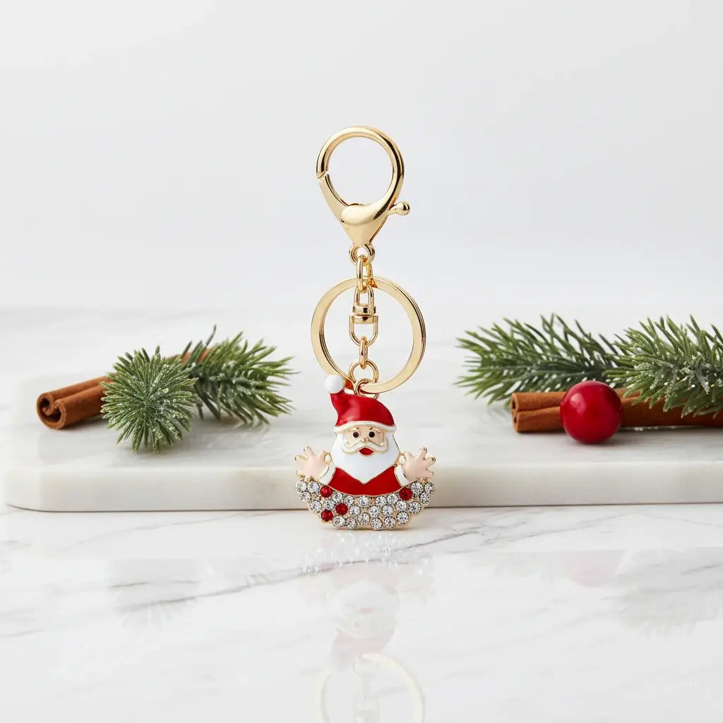 Χριστουγεννιάτικο Μπρελόκ Άγιος Βασίλης με Στρας – Γιορτινό Αξεσουάρ για Δώρο & Διακόσμηση