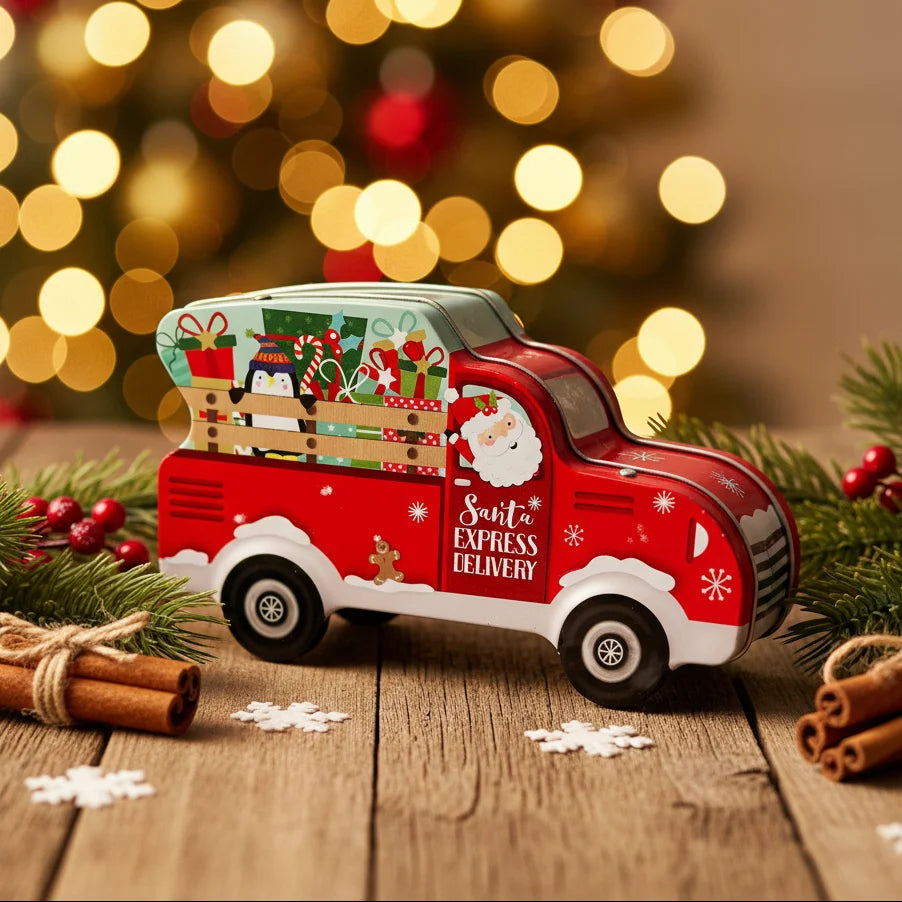 Ένα γιορτινό διακοσμητικό φορτηγάκι γεμάτο χαρά και λεπτομέρεια. Με σχέδιο “Santa Express Delivery”, φιγούρες του Άγιου Βασίλη, χιονάνθρωπους, δώρα και γλυκά, το κόκκινο φορτηγάκι των 18 εκ. είναι ιδανικό για να στολίσει το τραπέζι, το τζάκι ή μια παιδική γωνιά. Οι χρυσές λεπτομέρειες, τα ζωηρά χρώματα και η παιχνιδιάρικη σύνθεση δημιουργούν μια παραμυθένια αίσθηση που ζωντανεύει τις γιορτές.