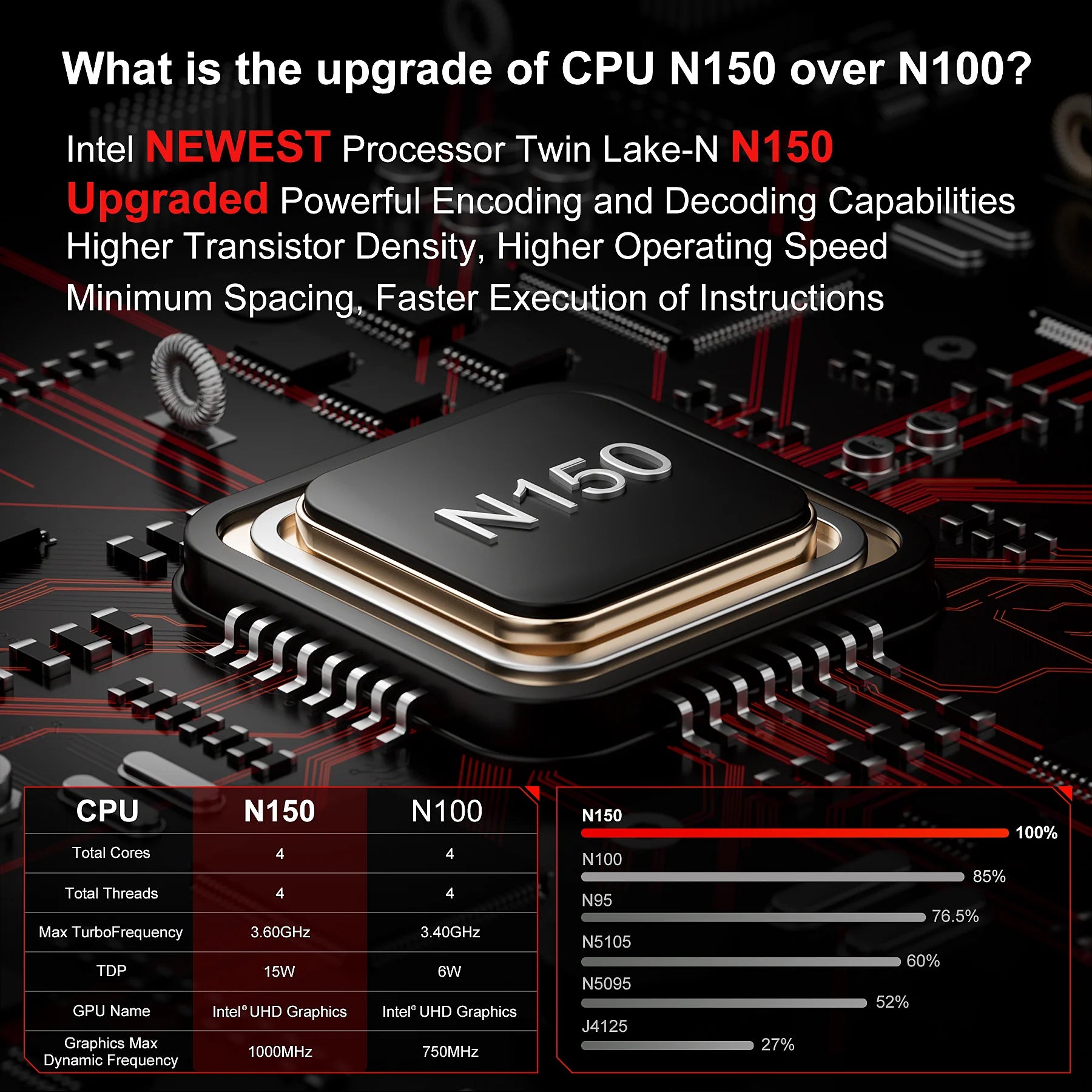 Επεξεργαστής : Intel N150 , 12ης Γενιάς – σταθερή και. γρήγορη απόδοση