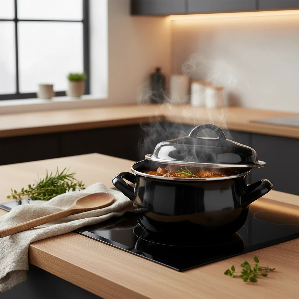 - Καπάκι που "Κλειδώνει" τη Γεύση: Το καπάκι παίζει καθοριστικό ρόλο στο μαγείρεμα, καθώς εγκλωβίζει τους υδρατμούς και τα αρώματα. Το αποτέλεσμα είναι φαγητό βαθιά νόστιμο, ζουμερό και μαλακό, που διατηρείται ζεστό μέχρι τη στιγμή του σερβιρίσματος.