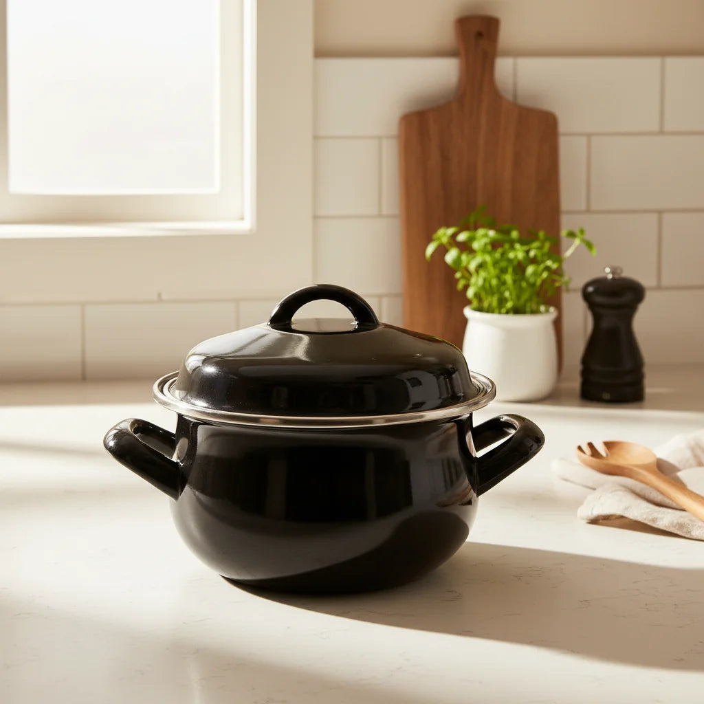 - Υψηλή Αισθητική & Αντοχή: Η επικάλυψη μαύρου εμαγιέ δεν προσφέρει μόνο μοντέρνο στυλ που ταιριάζει σε κάθε κουζίνα, αλλά και πρακτικότητα. Είναι εξαιρετικά ανθεκτική στις κηλίδες, δεν απορροφά οσμές και καθαρίζεται εύκολα.