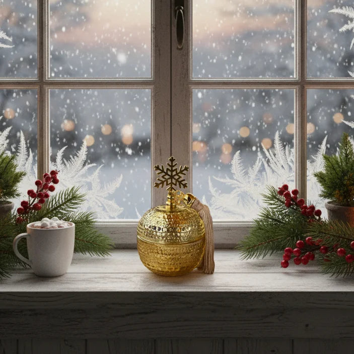Γούρι 2026 με Αρωματικό Κερί – Χρυσή Σφαίρα με Νιφάδα & Φούντα σε Συλλεκτική Συσκευασία
