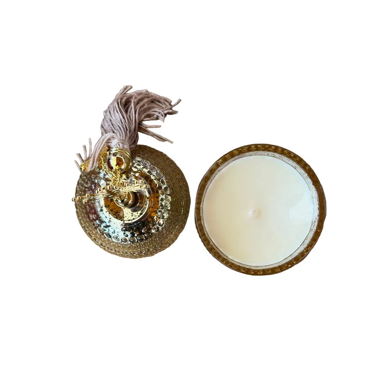 Ο συνδυασμός γούρι με αρωματικό κερί δημιουργεί μια ολοκληρωμένη αισθητηριακή εμπειρία. Το άρωμα του κεριού χαλαρώνει, ενώ η χρυσή σφαίρα προσελκύει θετικές δονήσεις στον χώρο σας.