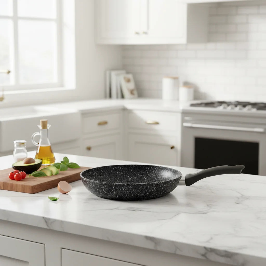 - Άψογο Μαγείρεμα: Η αντικολλητική επίστρωση γρανίτη επιτρέπει το ψήσιμο ευαίσθητων υλικών χωρίς να κολλάνε, ακόμη και όταν το τηγάνι είναι γεμάτο.