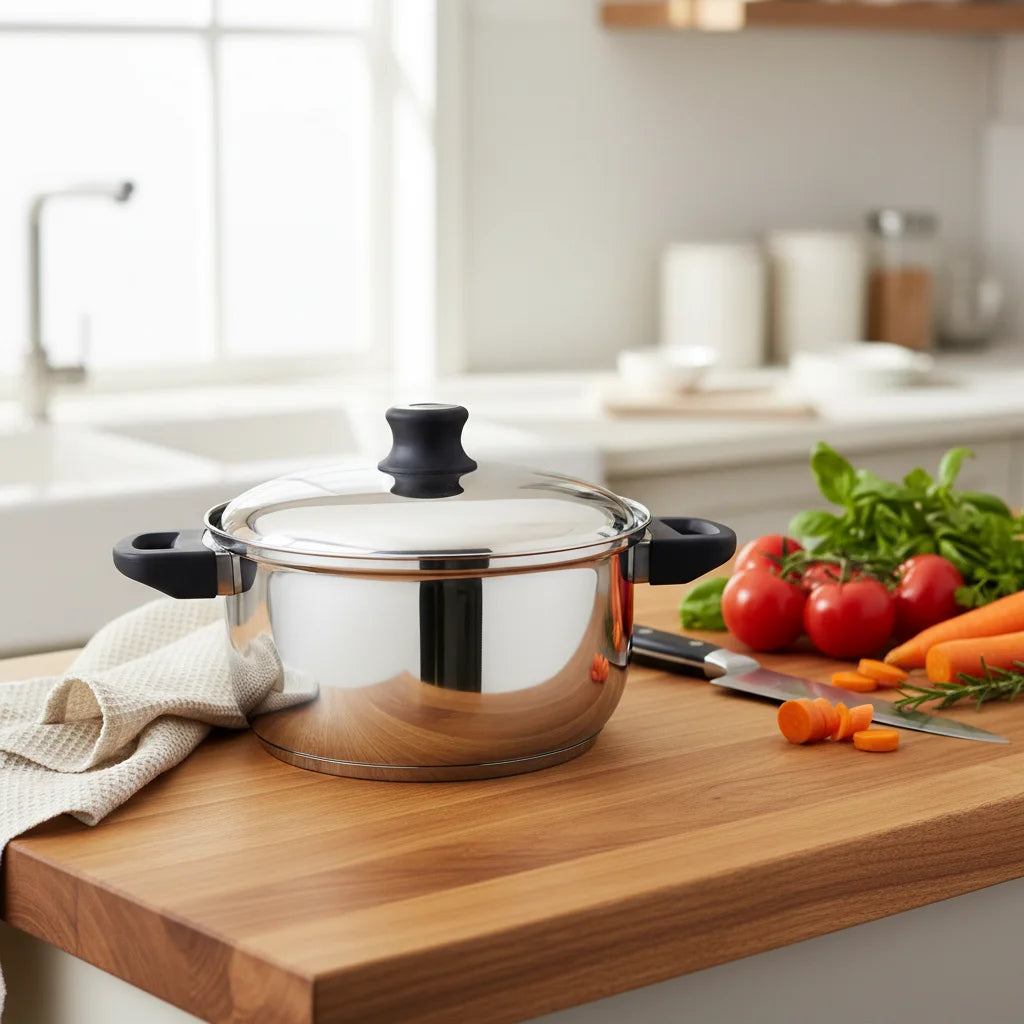 - Ασφάλεια στο Μαγείρεμα: Οι πλαστικές λαβές και το πόμολο στο καπάκι προστατεύουν τα χέρια από εγκαύματα, προσφέροντας άνετο και σταθερό κράτημα ακόμη και όταν η κατσαρόλα είναι καυτή.