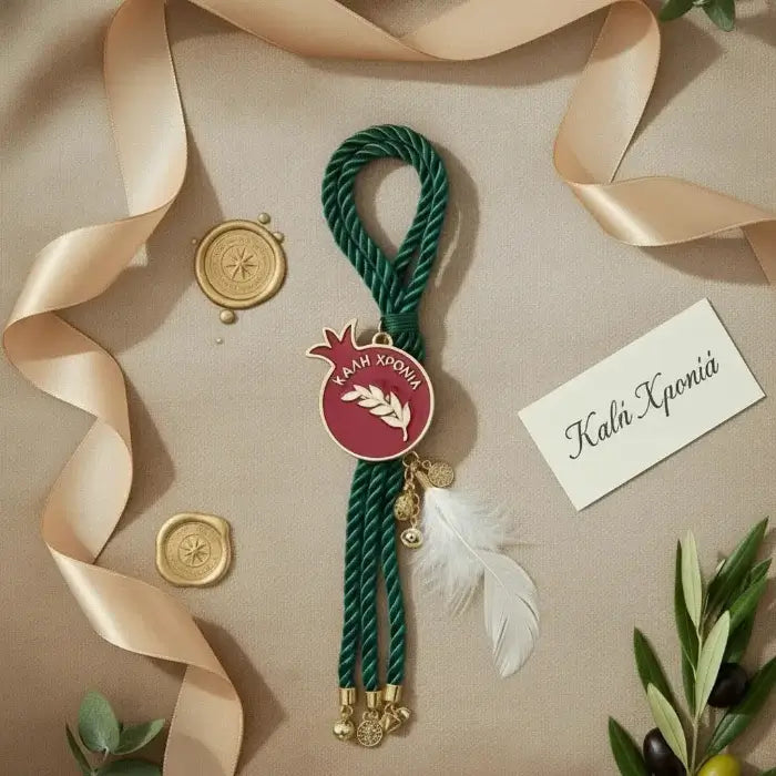 Το γούρι συνοδεύεται από πράσινο πλεκτό κορδόνι, λευκή φούντα, διακοσμητικό φτερό και χρυσά μεταλλικά στοιχεία, δημιουργώντας ένα πολυτελές και αρμονικό σύνολο. Ιδανικό για να στολίσει το σπίτι, το γραφείο ή να προσφερθεί ως πρωτοχρονιάτικο δώρο με ουσιαστικό μήνυμα. Συνδυάζει παραδοσιακά ελληνικά σύμβολα με μοντέρνα παρουσίαση, αποτελώντας εξαιρετική επιλογή για όσους αναζητούν γούρι υψηλής ποιότητας με συναισθηματική αξία.
