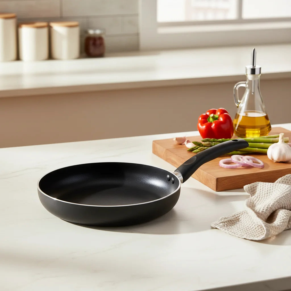 - Εργονομία: Η θερμομονωτική λαβή παραμένει δροσερή και προσφέρει σταθερό κράτημα, κάνοντας τον χειρισμό του τηγανιού ασφαλή και ξεκούραστο.