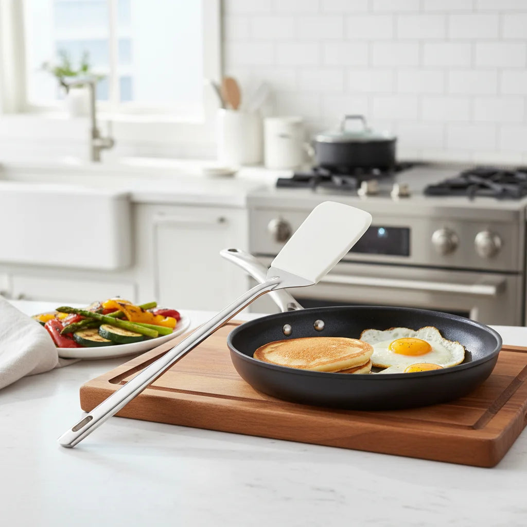Πολυχρηστικότητα: Ο ίσιος σχεδιασμός της επιτρέπει πολλαπλές χρήσεις: από το γύρισμα μπιφτεκιών και φιλέτων στην πλάκα ψησίματος, μέχρι το σερβίρισμα κομματιών πίτας και το ίσιωμα κρεμών στη ζαχαροπλαστική.