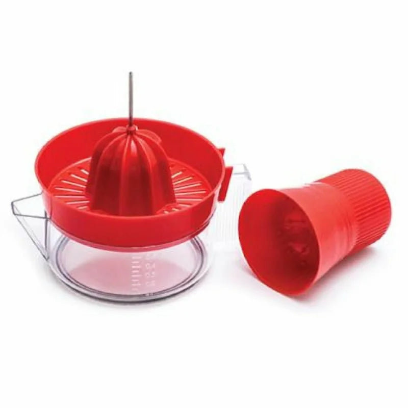 Διαθέτει διαφανές δοχείο με ενδείξεις μέτρησης για ακρίβεια στις συνταγές σας, καθώς και προστατευτικό καπάκι που επιτρέπει την υγιεινή αποθήκευση του χυμού στο ψυγείο χωρίς να μεταφέρονται οσμές.