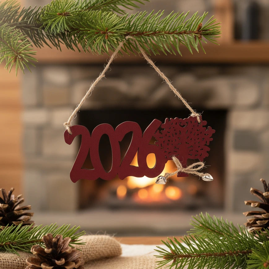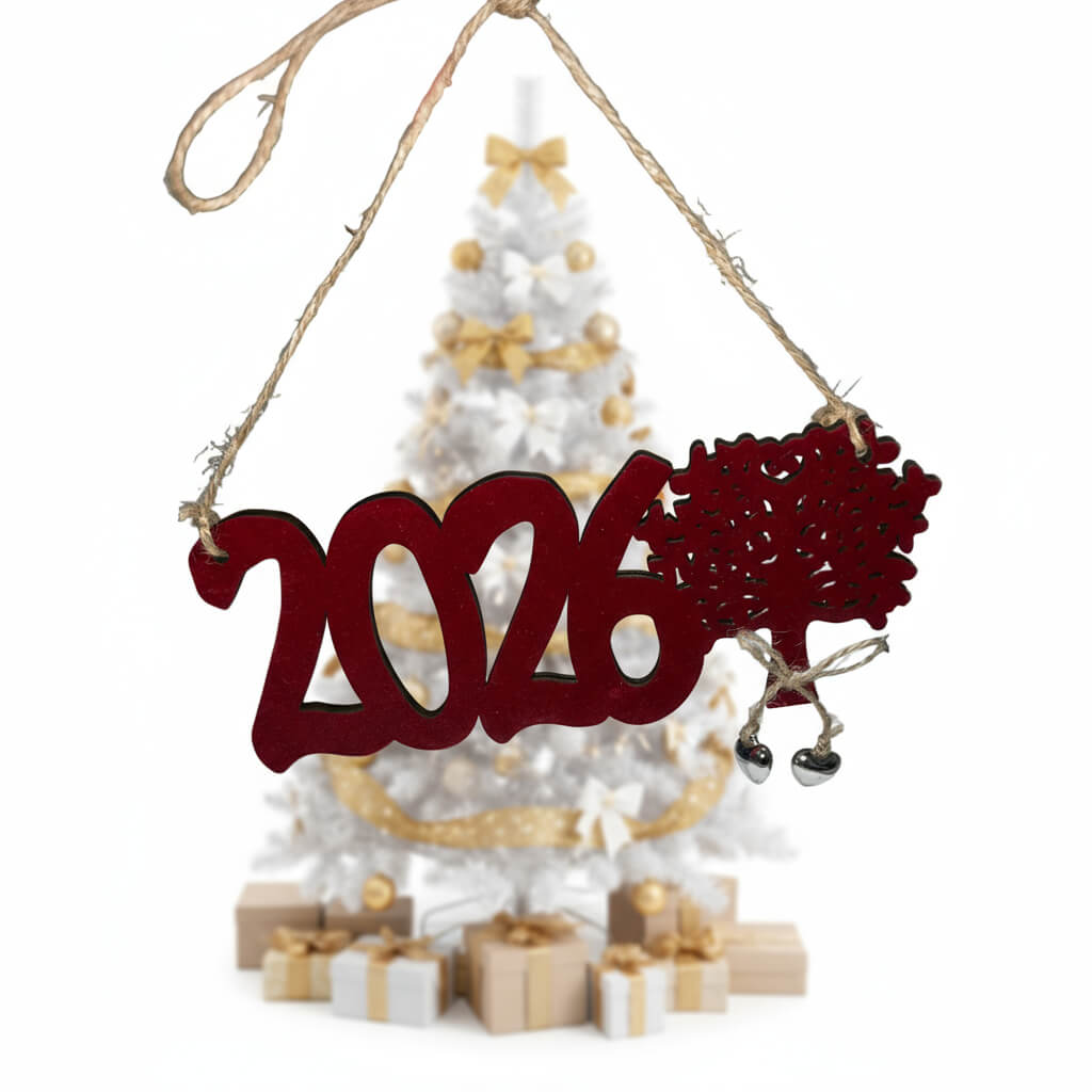 Ένα κομψό ξύλινο στολίδι για το 2026, σχεδιασμένο για να φέρνει τη θαλπωρή των γιορτών στο χώρο σας. Με ανάγλυφο σχέδιο δέντρου, βελούδινη υφή και φυσικό σπάγγο με καμπανάκια, αποπνέει ρετρό αισθητική και συναισθηματική αξία. Ιδανικό για το δέντρο, το τζάκι ή ως δώρο γεμάτο νόημα.
