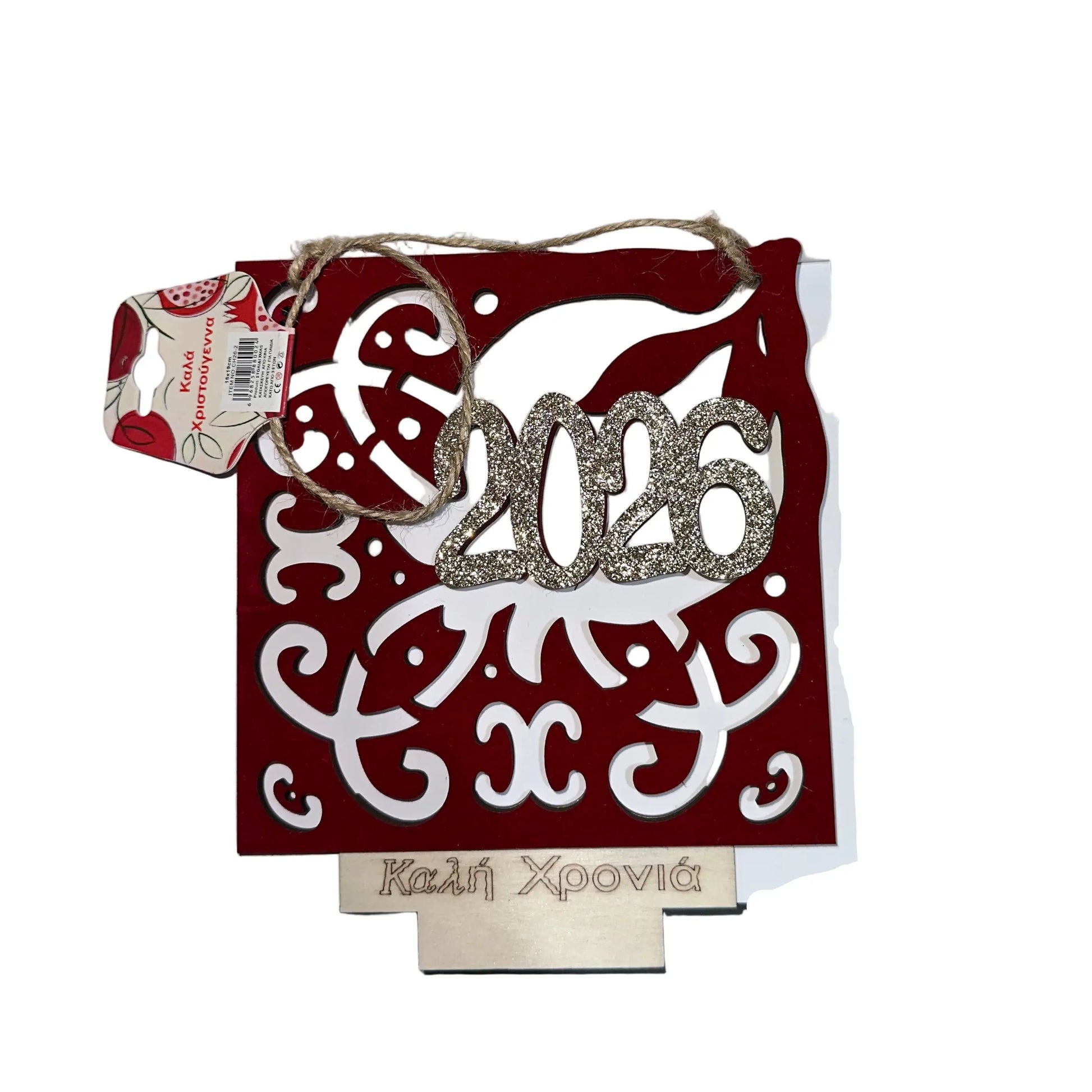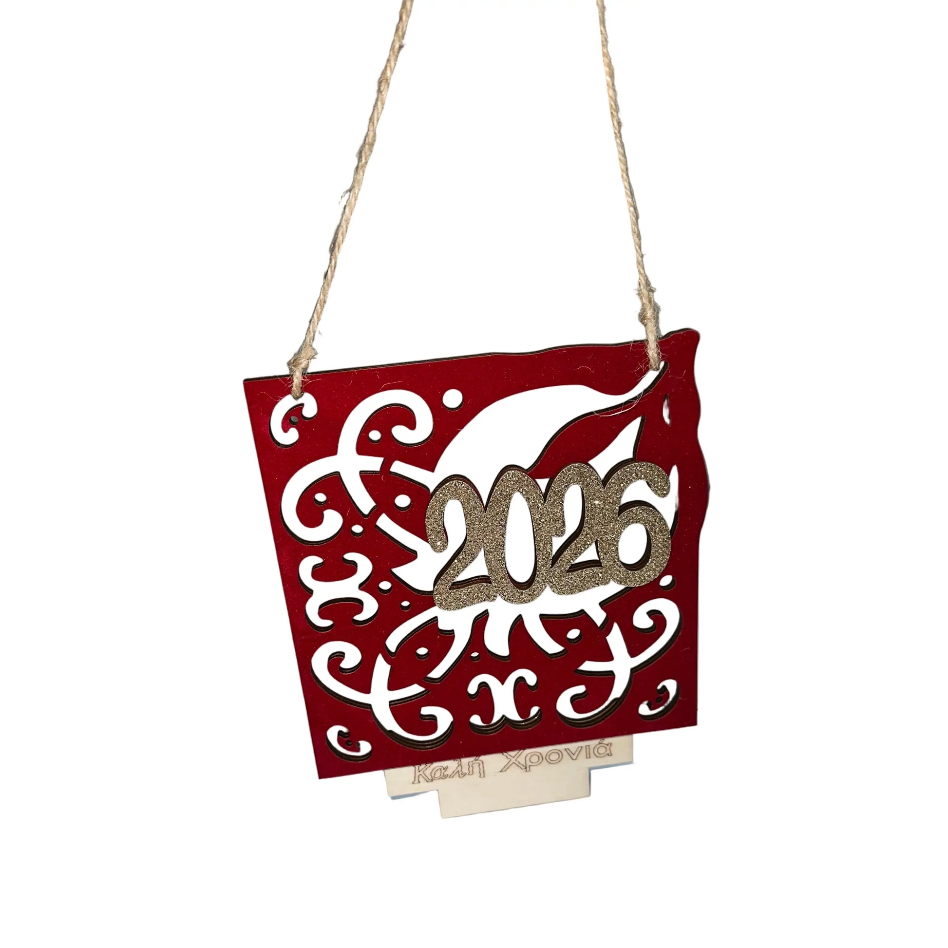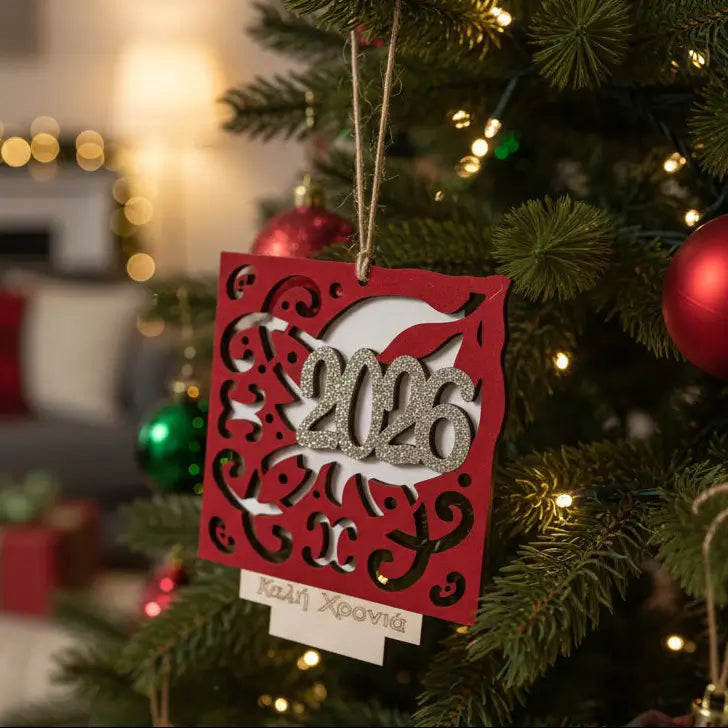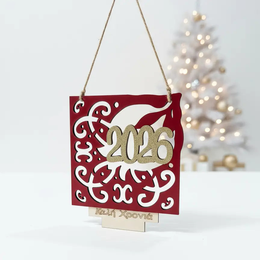 Γιορτινό, κομψό και γεμάτο νόημα. Το βελούδινο ξύλινο κρεμαστό “2026” με την ευχή “Καλή Χρονιά” συνδυάζει πολυτέλεια και παράδοση. Με κόκκινο βελούδο, χρυσές λεπτομέρειες και χειροποίητη ξύλινη βάση, είναι ιδανικό για το χριστουγεννιάτικο δέντρο ή ως γούρι για το νέο έτος.