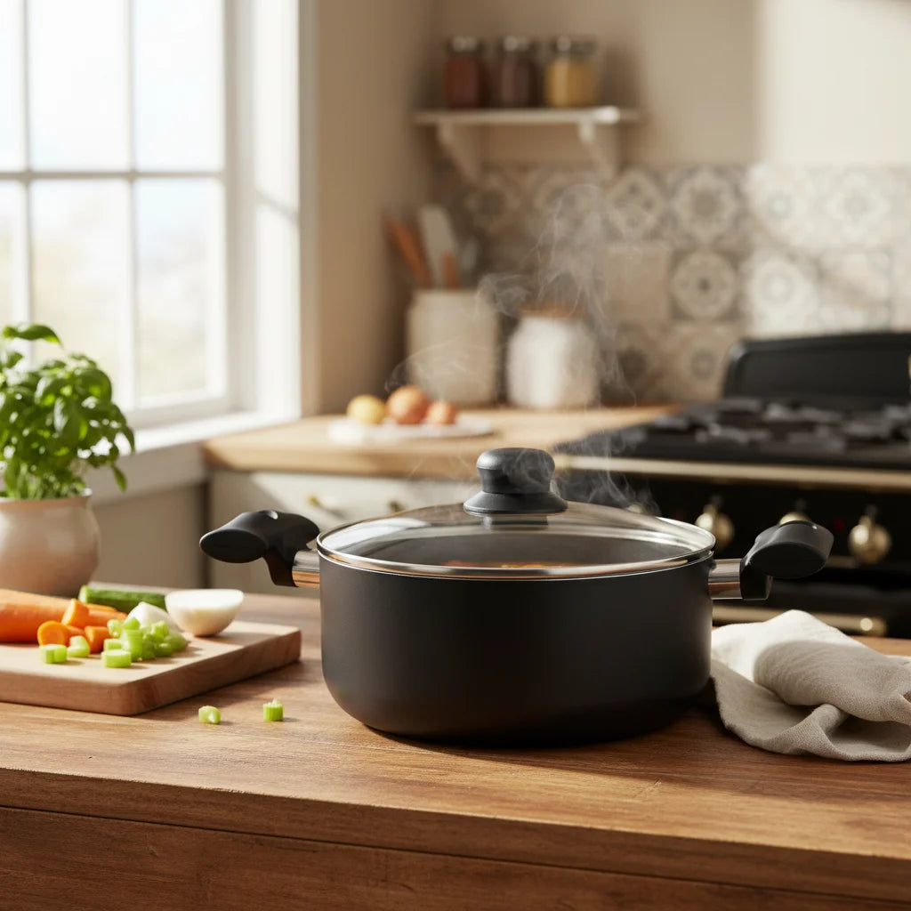 - Άνεση: Οι εργονομικές λαβές παραμένουν ασφαλείς στο κράτημα, κάνοντας τη μεταφορά της γεμάτης κατσαρόλας εύκολη και ασφαλή διαδικασία.