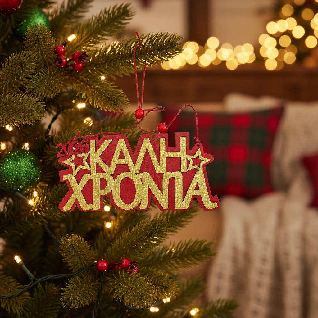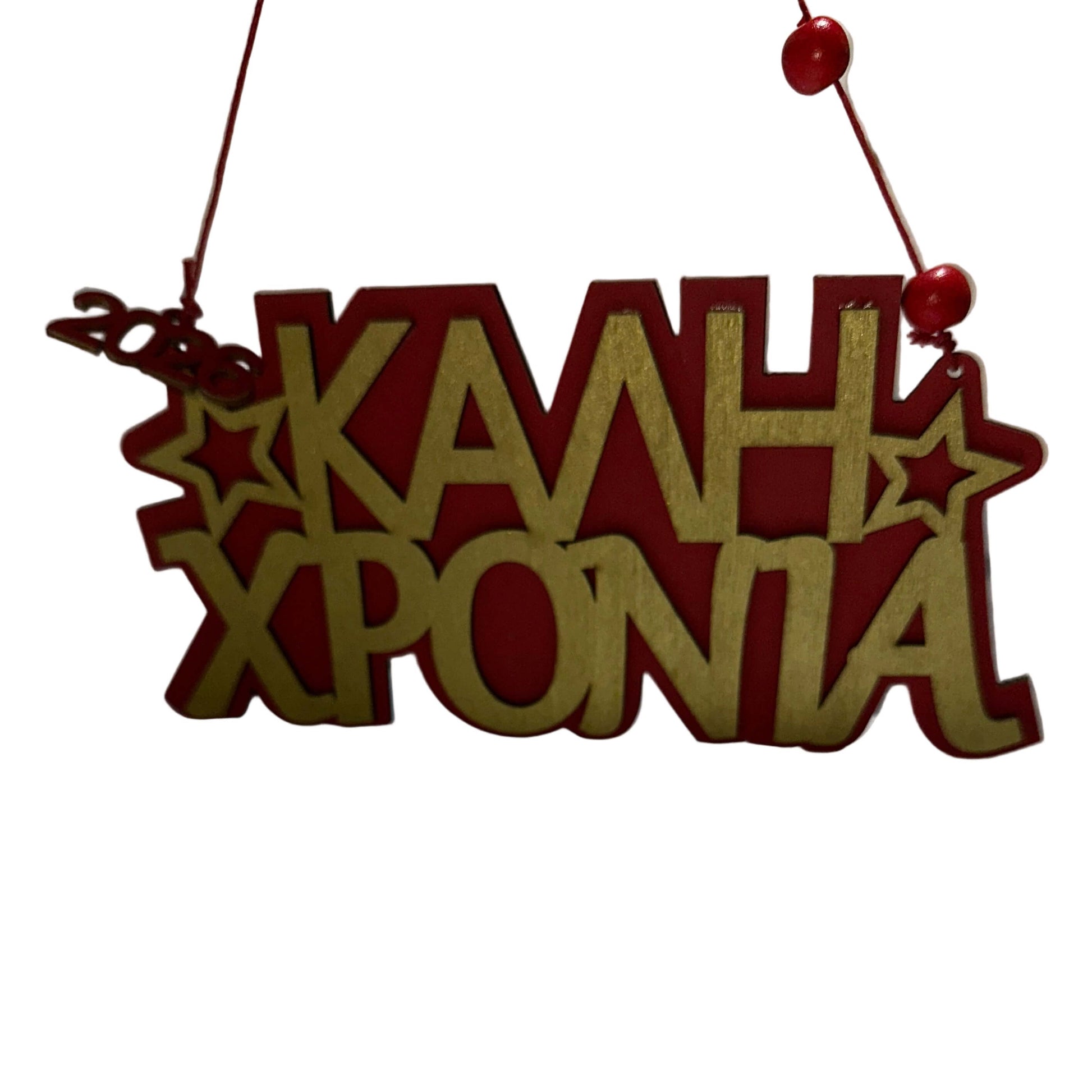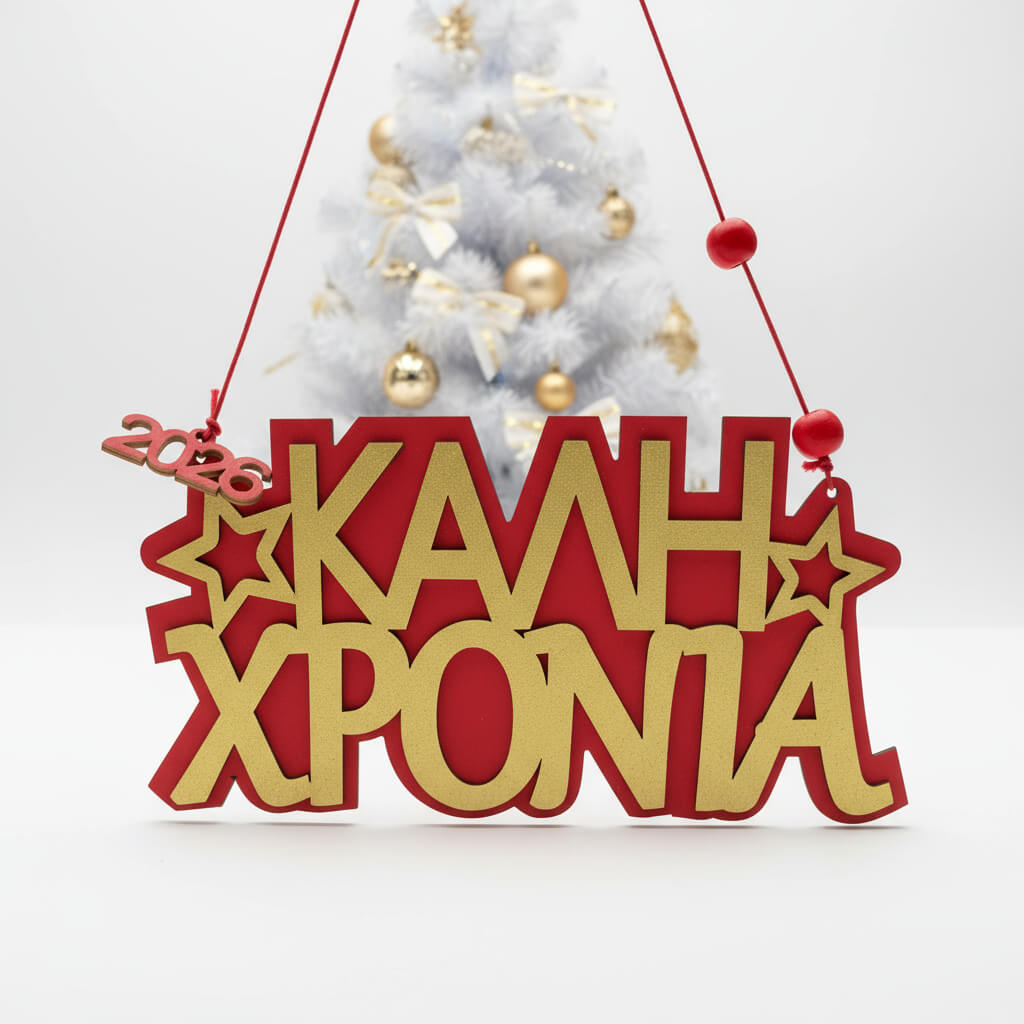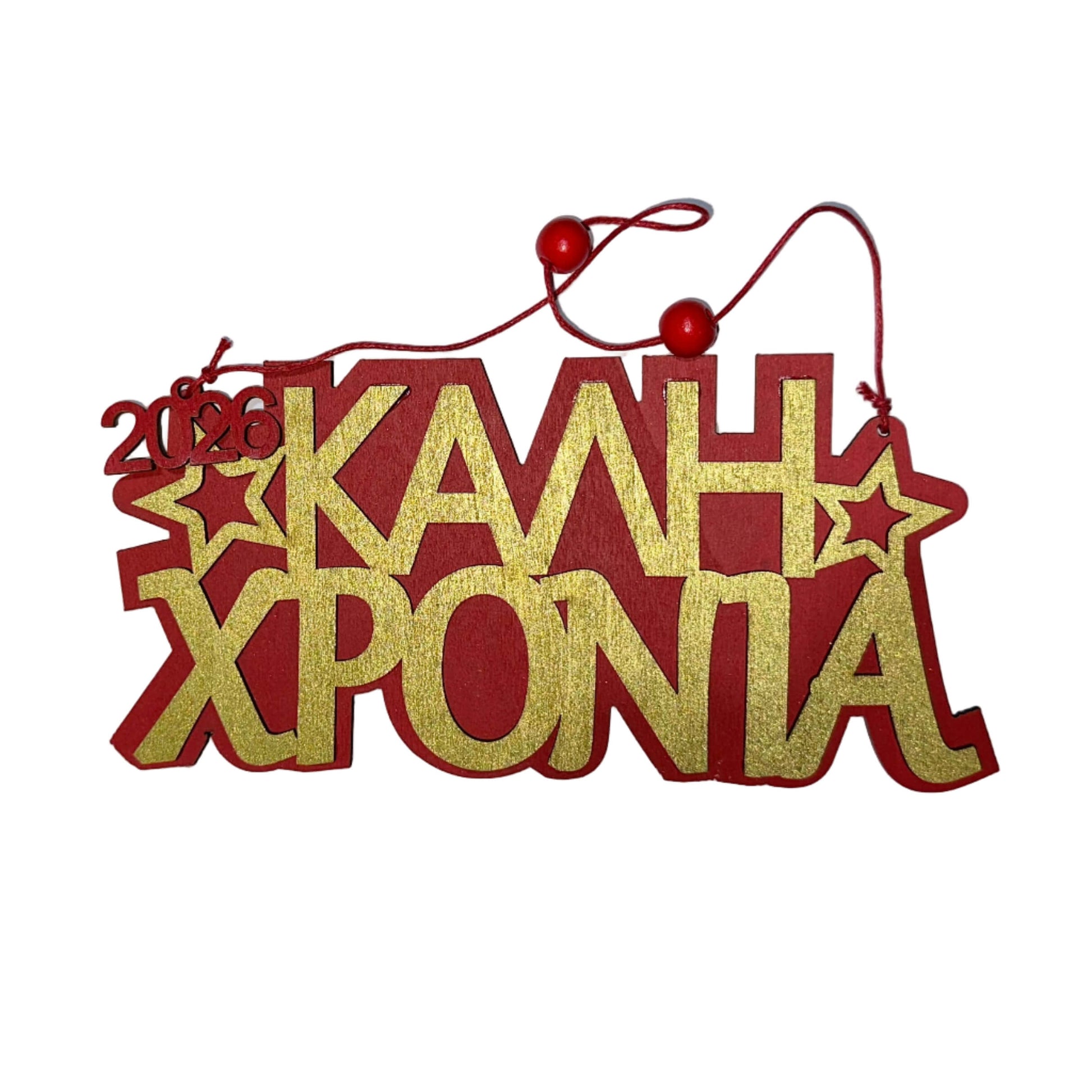 Γιορτινό ξύλινο στολίδι με ανάγλυφη επιγραφή «Καλή Χρονιά» και το έτος 2026, σε κόκκινο και χρυσό. Με ρουστίκ κορδόνι για κρέμασμα, αποτελεί ιδανική προσθήκη για το χριστουγεννιάτικο δέντρο ή το τζάκι. Οι διαστάσεις 13×16 εκ. το καθιστούν εντυπωσιακό αλλά ισορροπημένο, ενώ η χειροποίητη αισθητική του προσθέτει ζεστασιά και χαρακτήρα στη γιορτινή διακόσμηση.